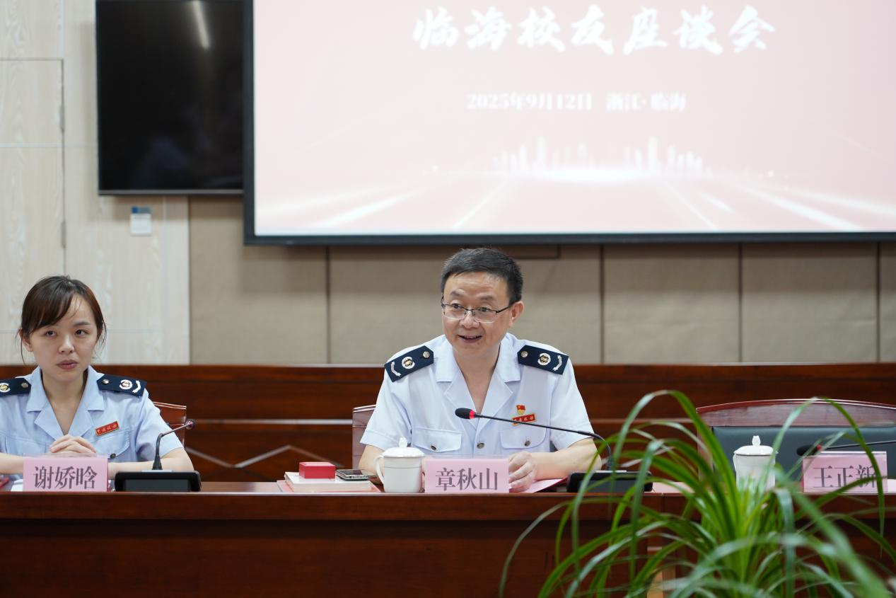 校宣传部部长王正新代表学校向校友致以诚挚问候,对广大校友长期以来给予学校事业发展的关心与支持表示衷心感谢,王正新系统介绍了母校近年来在学科建设、人才培养、校园发展等方面的重要成果,包括成功入选省高水平大学建设高校、应用经济学跻身省登峰学科、新增 2 个一级学科博士点、正式获得硕士推免资格等,充分肯定了临海税务系统校友扎根岗位、精准落实税收政策、服务地方发展的责任担当。同时解读学校 “使命文化大讨论”活动背景 及 “财经 × 数智”“财经 × 科技”“财经 + 产业” 人才培养改革方向,诚挚邀请校友结合行业实践建言献策,共同推动学校文化建设与人才培养质量提升。
