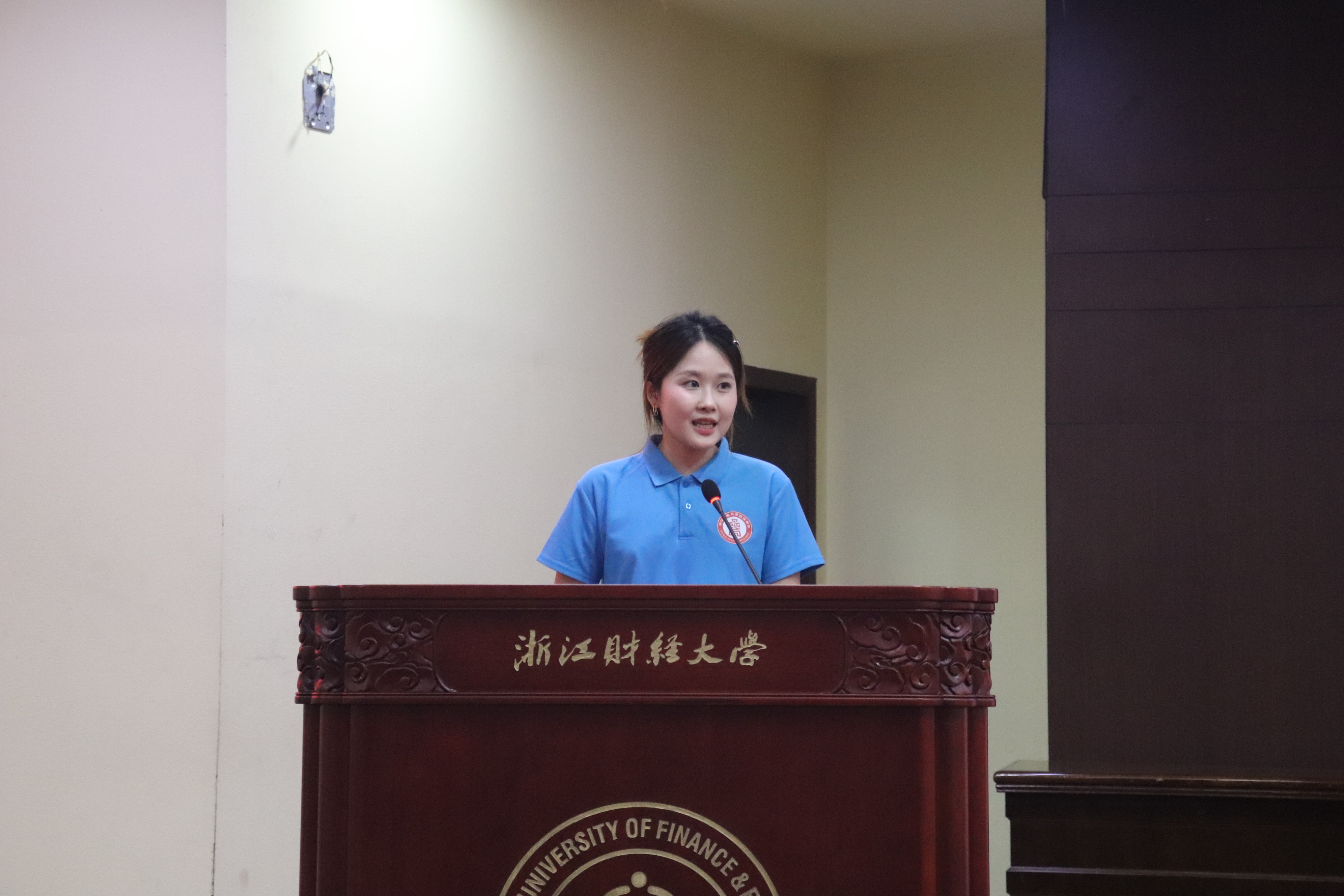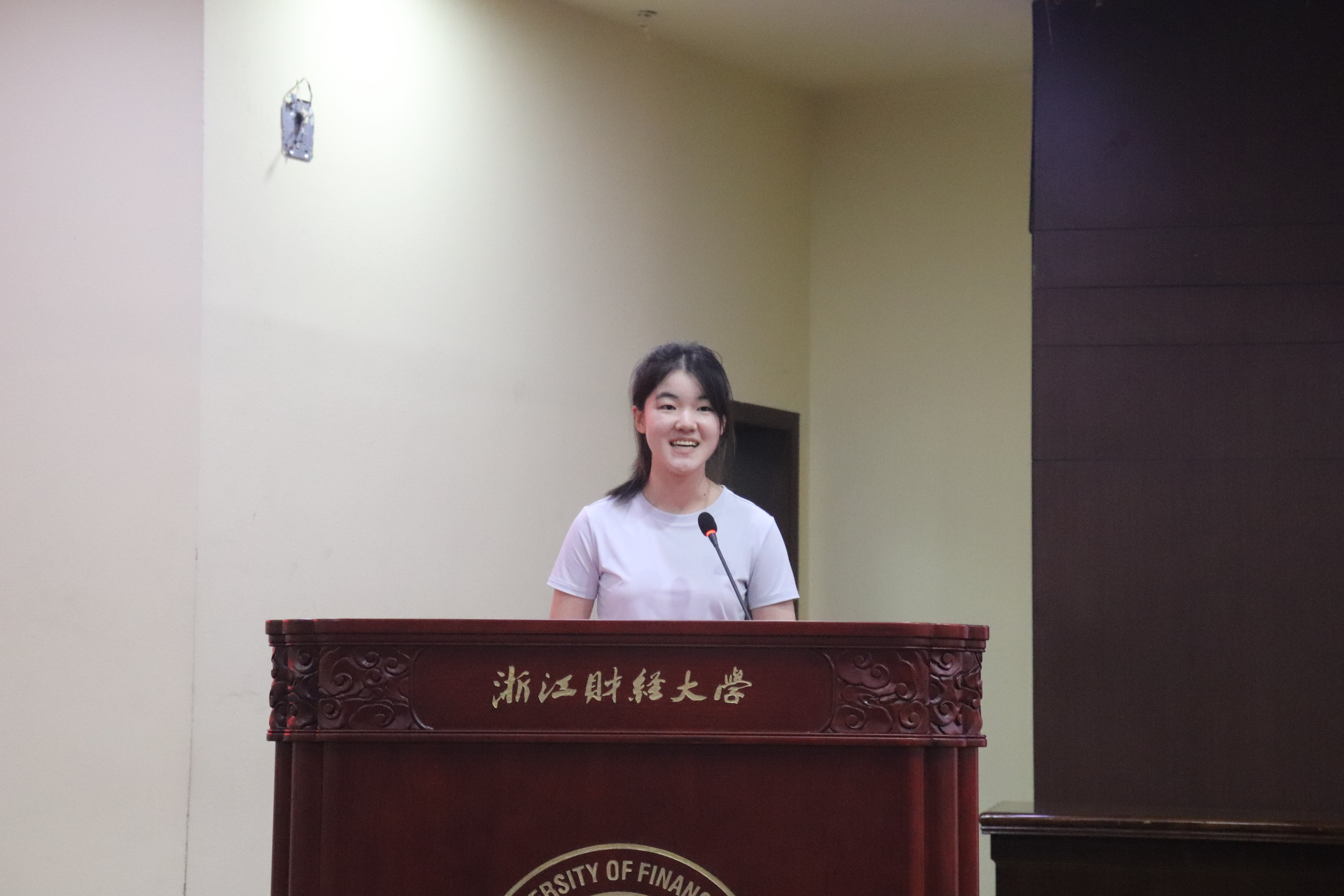 25经济1班本科生杨壹秒代表新生发言。她讲述了初入学院的真切感受,并向精心准备迎新的师长表示感谢。她怀揣着对大学生活的憧憬,也立下了潜心向学、将理论与现实结合、践行“经世济民”理想的奋进决心,展现了新一代“经济人”的活力与担当。