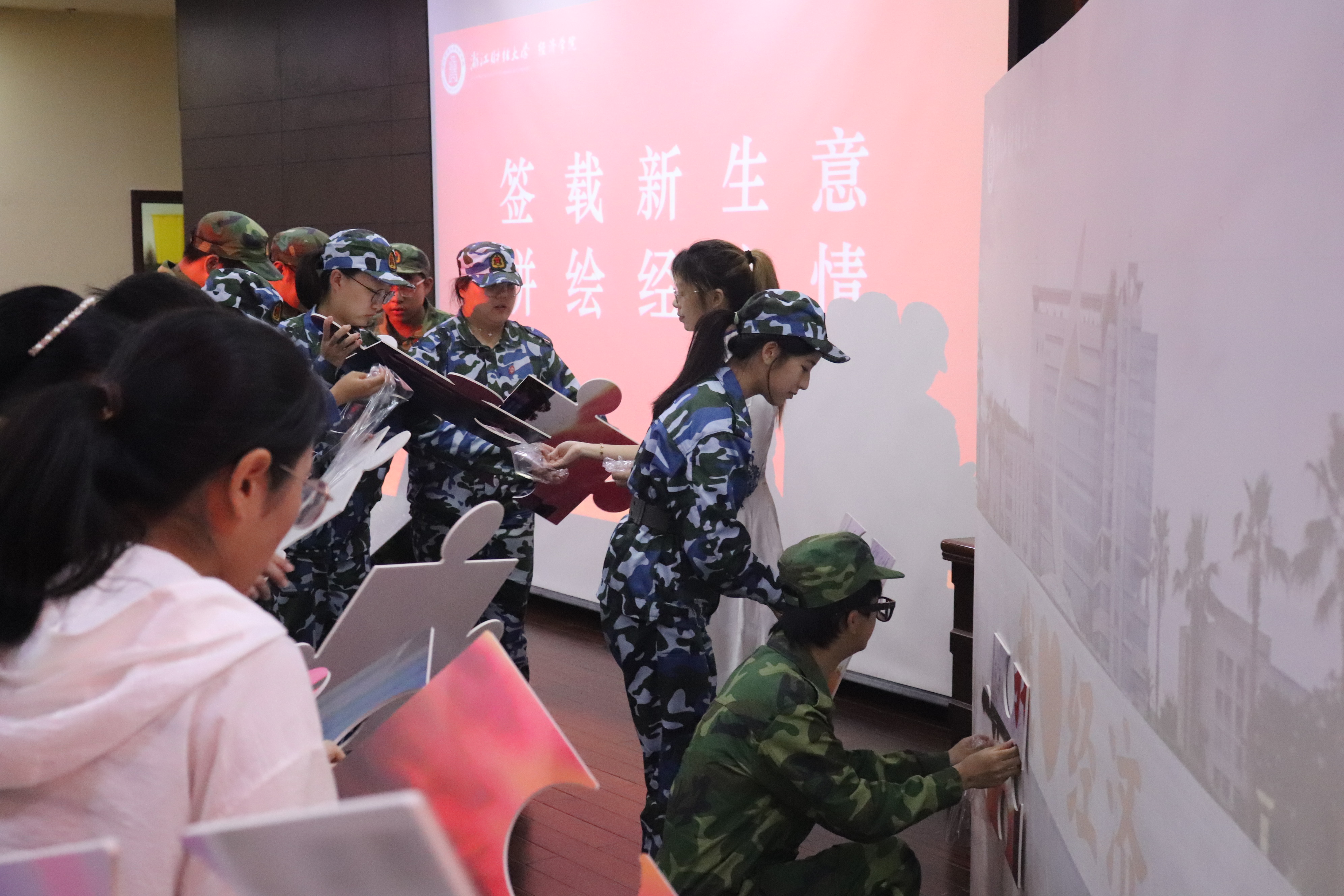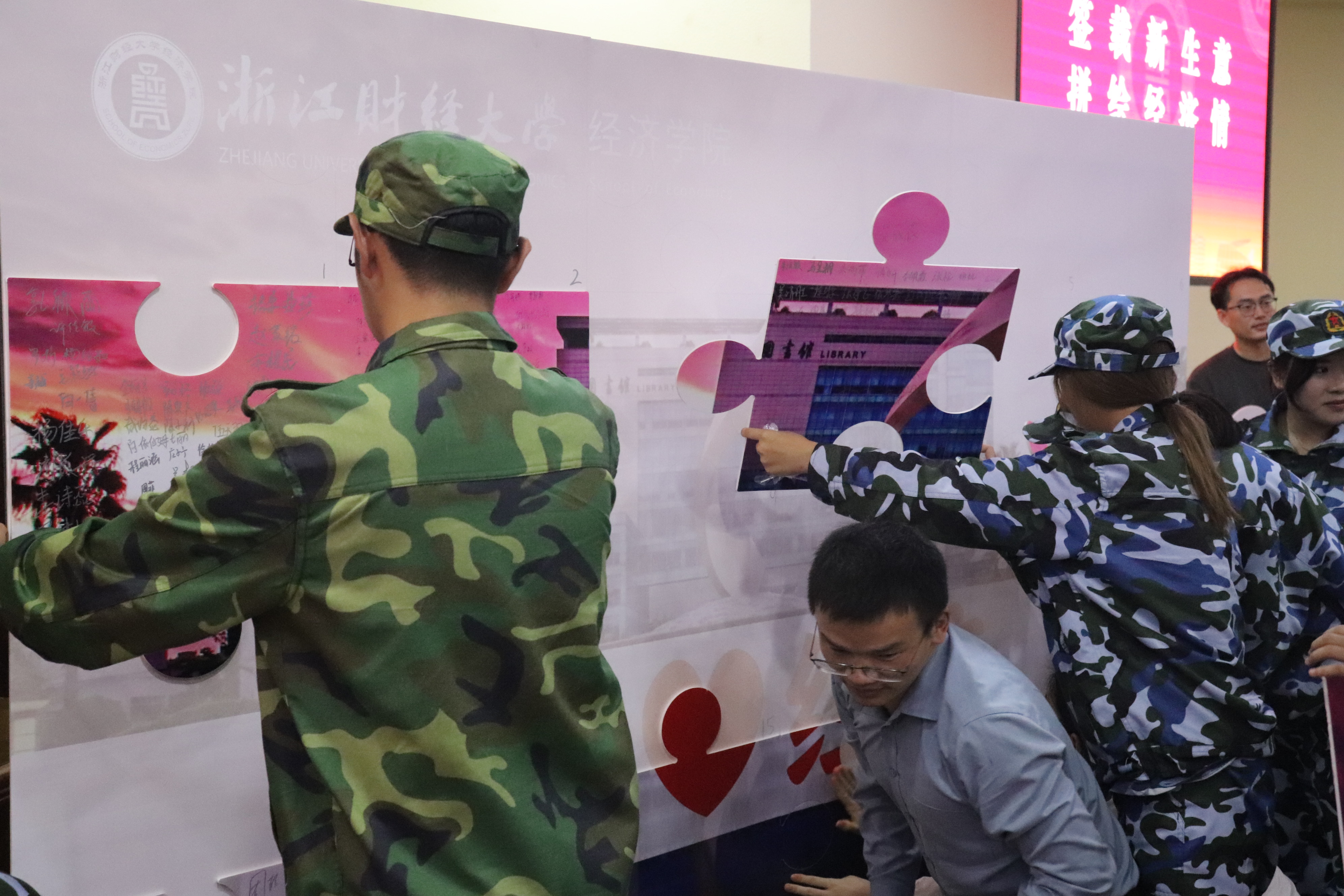 典礼最后,学院领导、老师和新生各班代表完成了“我爱伟德体育”的巨幅拼图,当带有全体新生签名的“伟德体育全家福”蓝图完整呈现时,全场响起热烈掌声。这一环节既象征着2025级新生正式融入学院大家庭,也凝聚起师生携手共建学院未来的向心力。